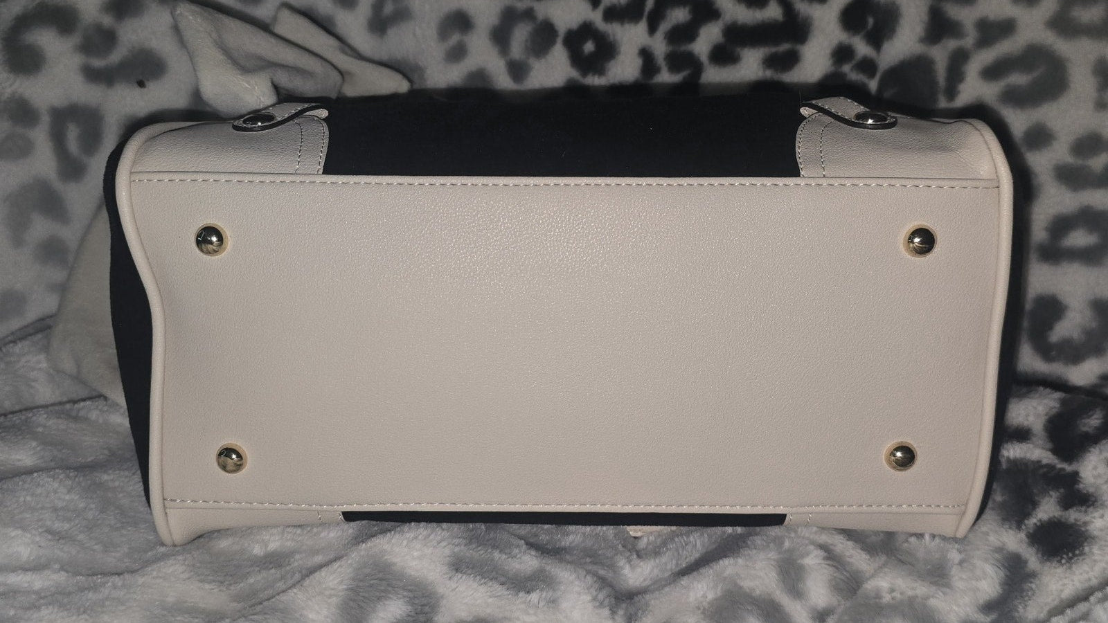 Materials: Faux leather + velour exterior; soft fabric lining